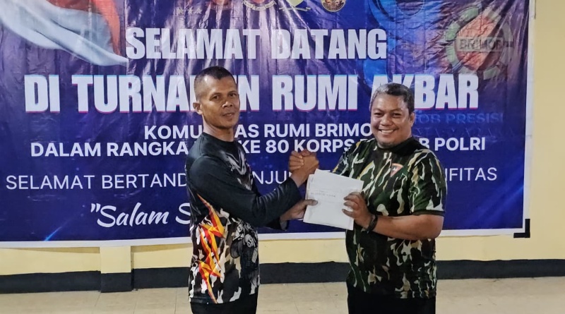 Sumbawa, pulausumbawanews.net – Dores BBM (peserta dari Komunitas Rumi Batu Bulan Maras) berhasil meraih juara 1 pada Turnamen Rumi Akbar Brimob Sumbawa 2025. Melalui turnamen yang digelar dalam rangka memeriahkan Hari Ulang Tahun (HUT) Korps Brimob ke 80 ini, Dores berhasil mengantongi 820 poin. Dengan demikian Dores berhak atas hadiah uang sebesar Rp 3 juta dan Kulkas 2 pintu serta trophy. Juara kedua diraih oleh Heru dari Komunitas Rumi BSP Baru Kecamatan Moyo Utara dengan perolehan 665 poin, berhak mendapatkan uang sebesar Rp 2,5 juta dan Mesin Cuci 10 kg serta trophy. Juara 3 diraih Kawan Man dari Komunitas Anggora dengan 545 poin, berhak mendapatkan hadiah uang Rp 2 juta dan Smart TV 40 inch serta trophy. Juara ke 4 diraih Merbat dari Marga Karya dengan 485 poin, berhak atas hadiah uang Rp1,5 juta, speaker aktif dan trophy. Juara ke 5 diraih Munawar 85 dari BD Lape yang mengantongi 480 poin, mendapatkan hadiah uang Rp 1 juta, kompor gas dan trophy.